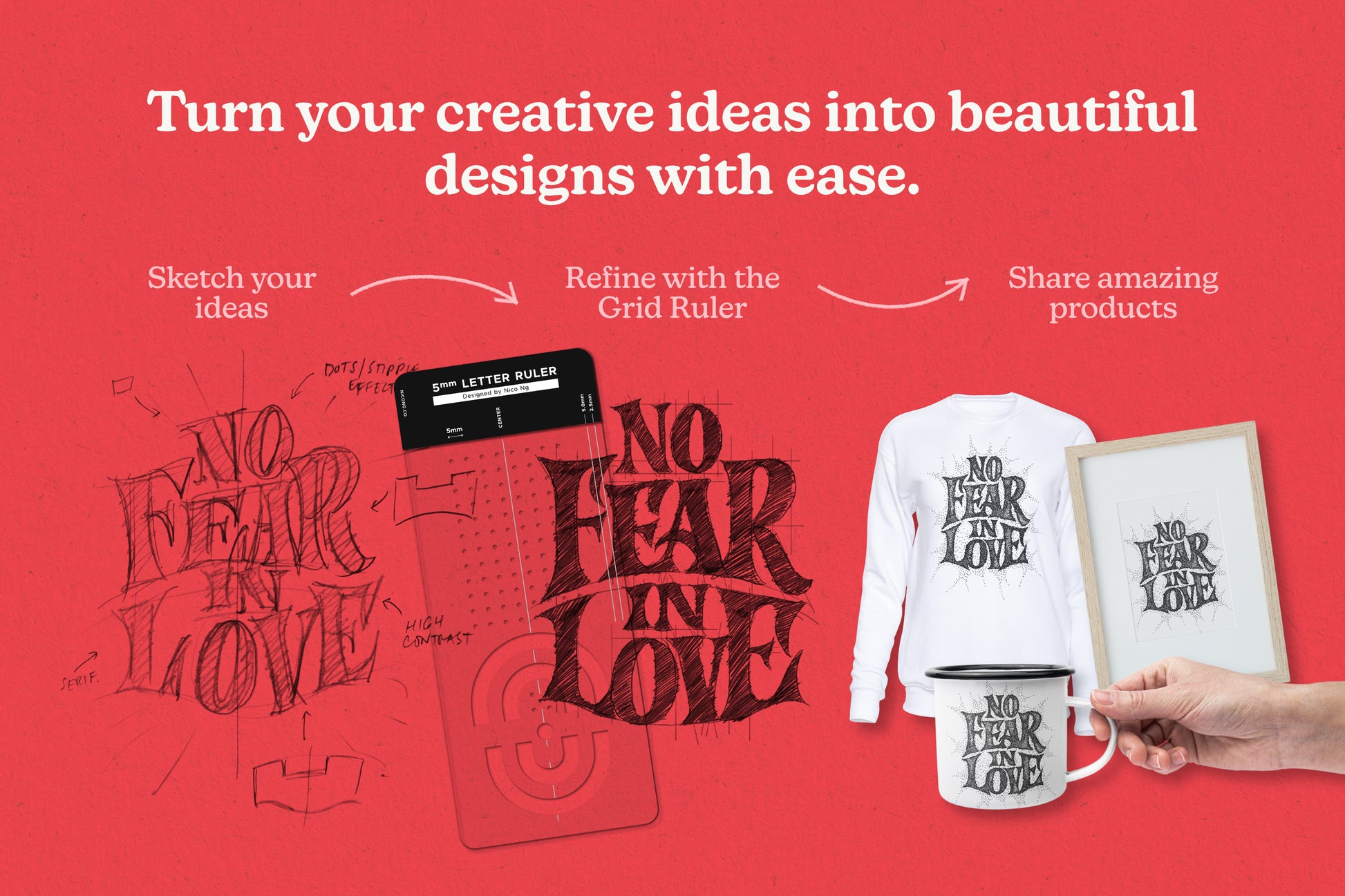 Easily sketch your designs. Design details and processes are critical to creating great designs. With the Grid Ruler's grid and guides, you can now easily sketch neat letters and draw varying design sizes, weights, and ratios consistently using just one ruler. It's never been simpler!