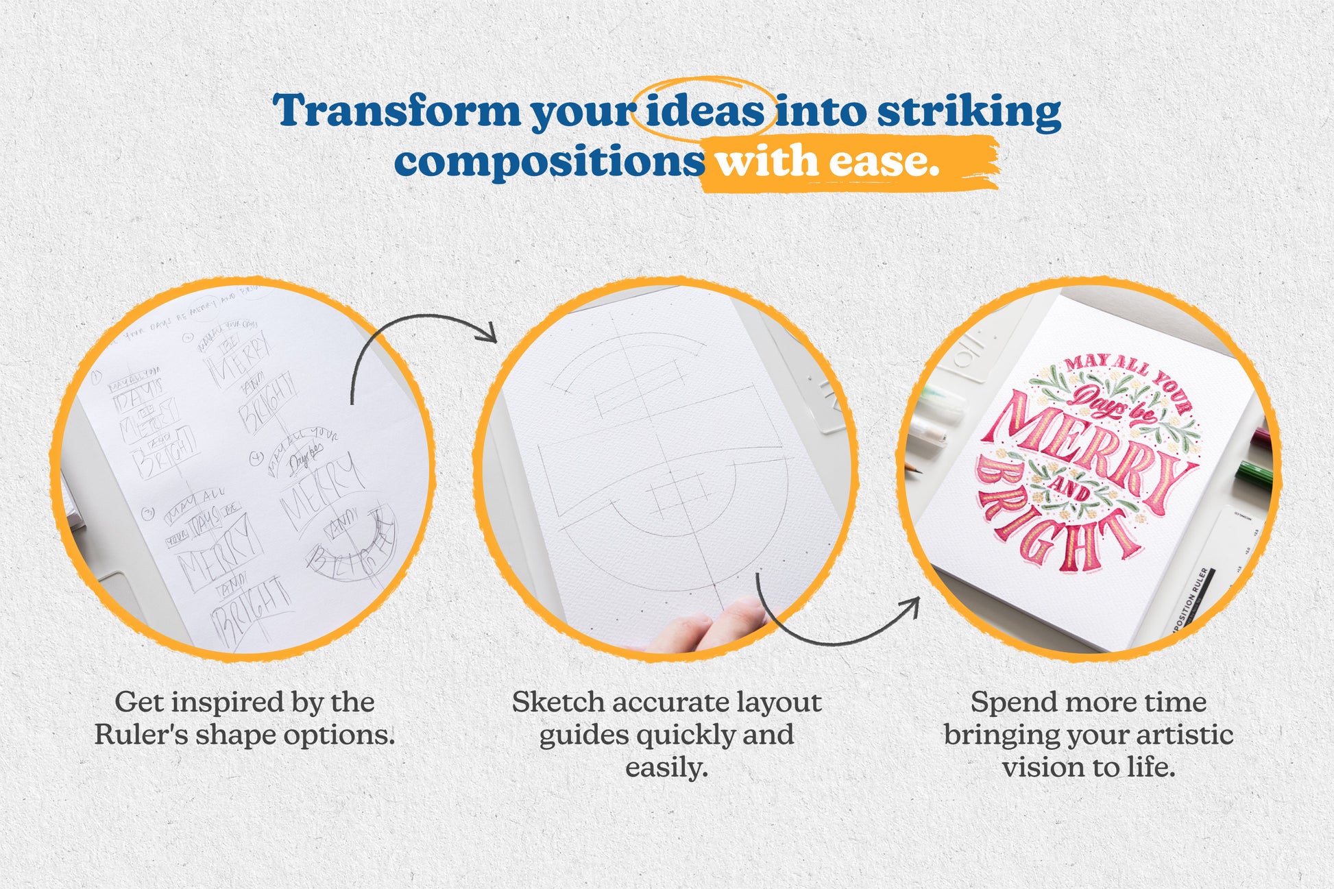 Effortlessly draw well-balanced lettering. Thanks to the ruler's guide lines and measurement markers, you can skip the tedious process of manual measuring.