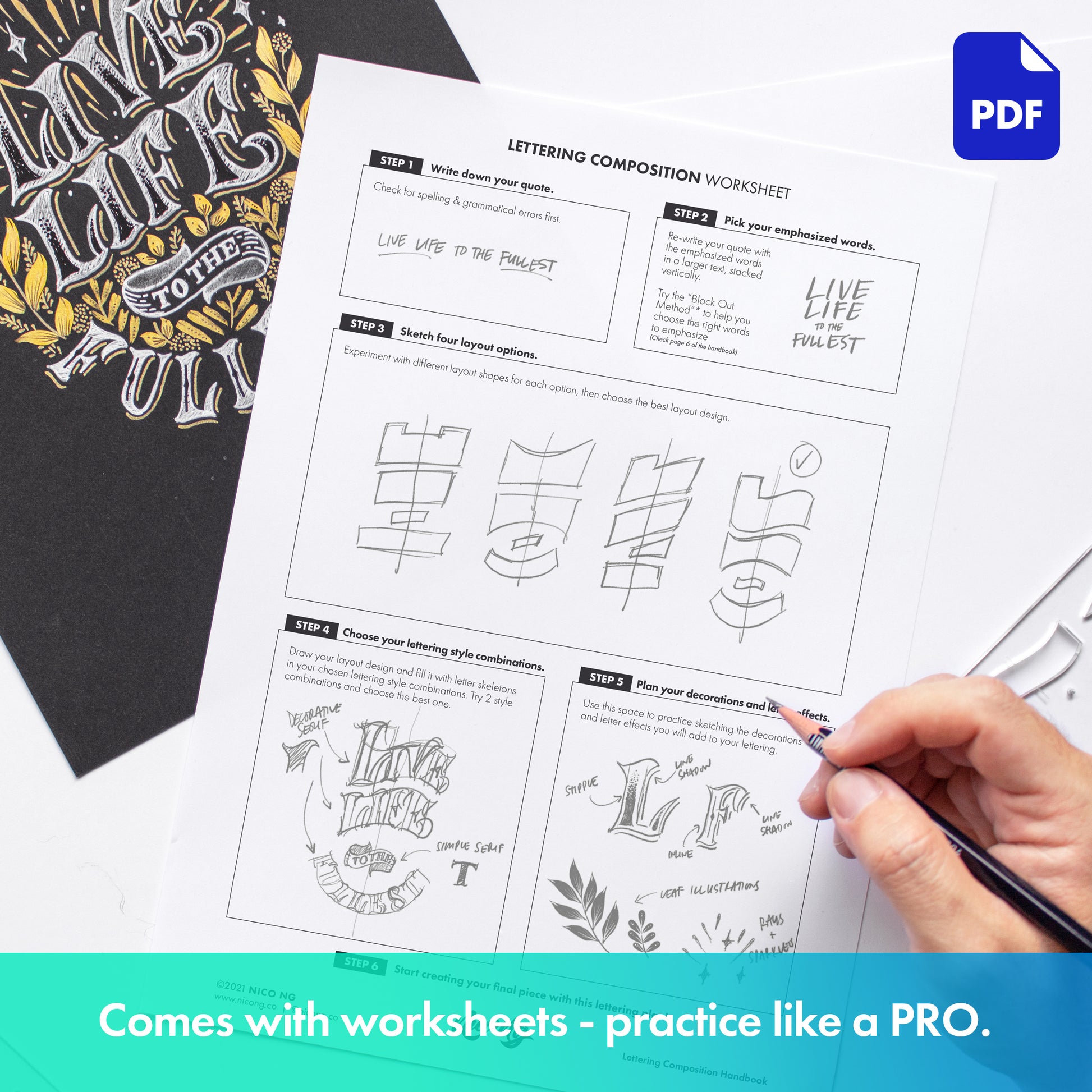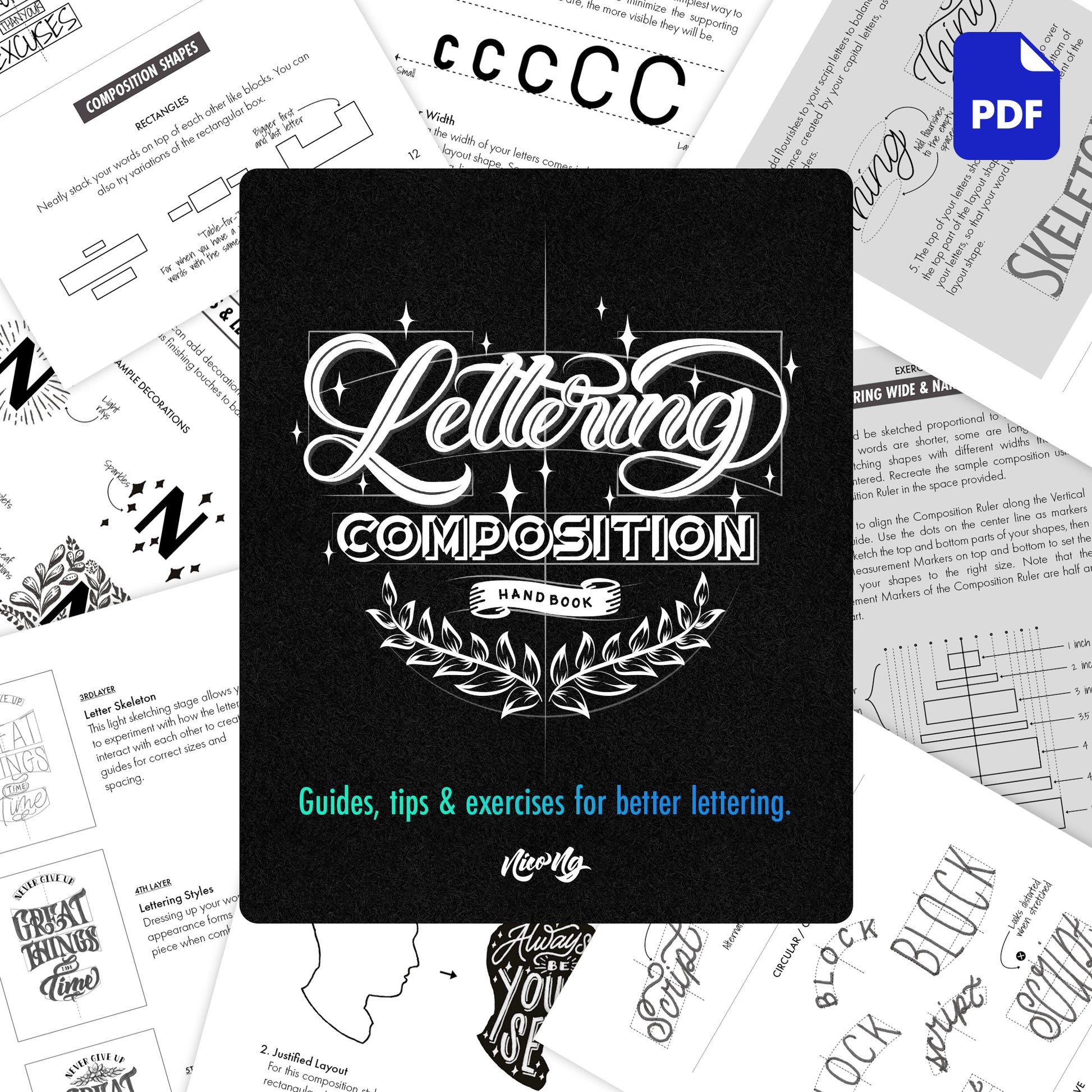 Learn all of these and get access to more helpful tips and exercises with the Lettering Composition Handbook.