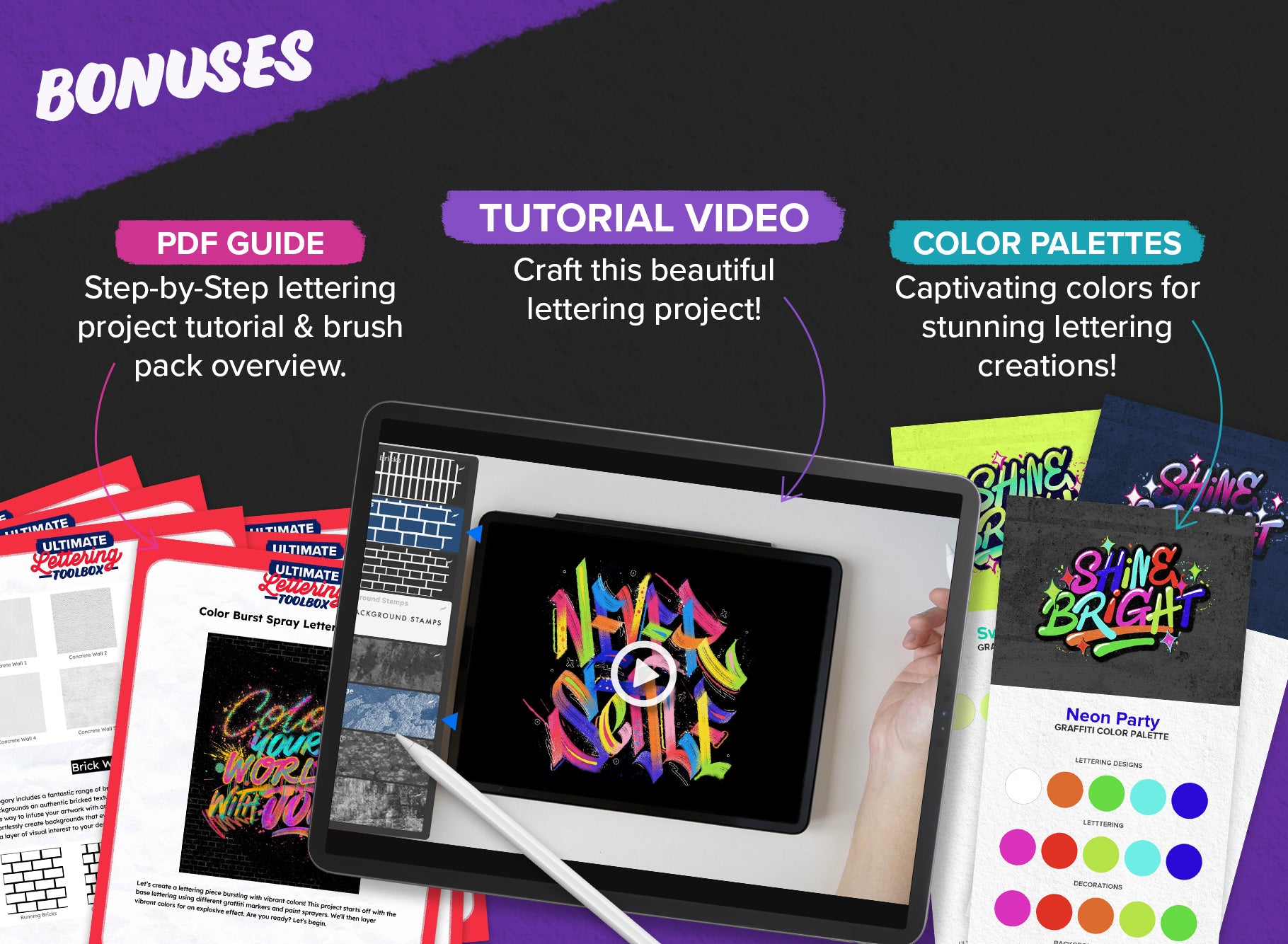 Are you a fan of the energetic world of graffiti lettering and street art but not the mess and limitations it comes with? Introducing the Ultimate Lettering Toolbox - Graffiti pack, your gateway to this vibrant culture without the need for a physical wall to paint on or the mess of traditional graffiti materials.