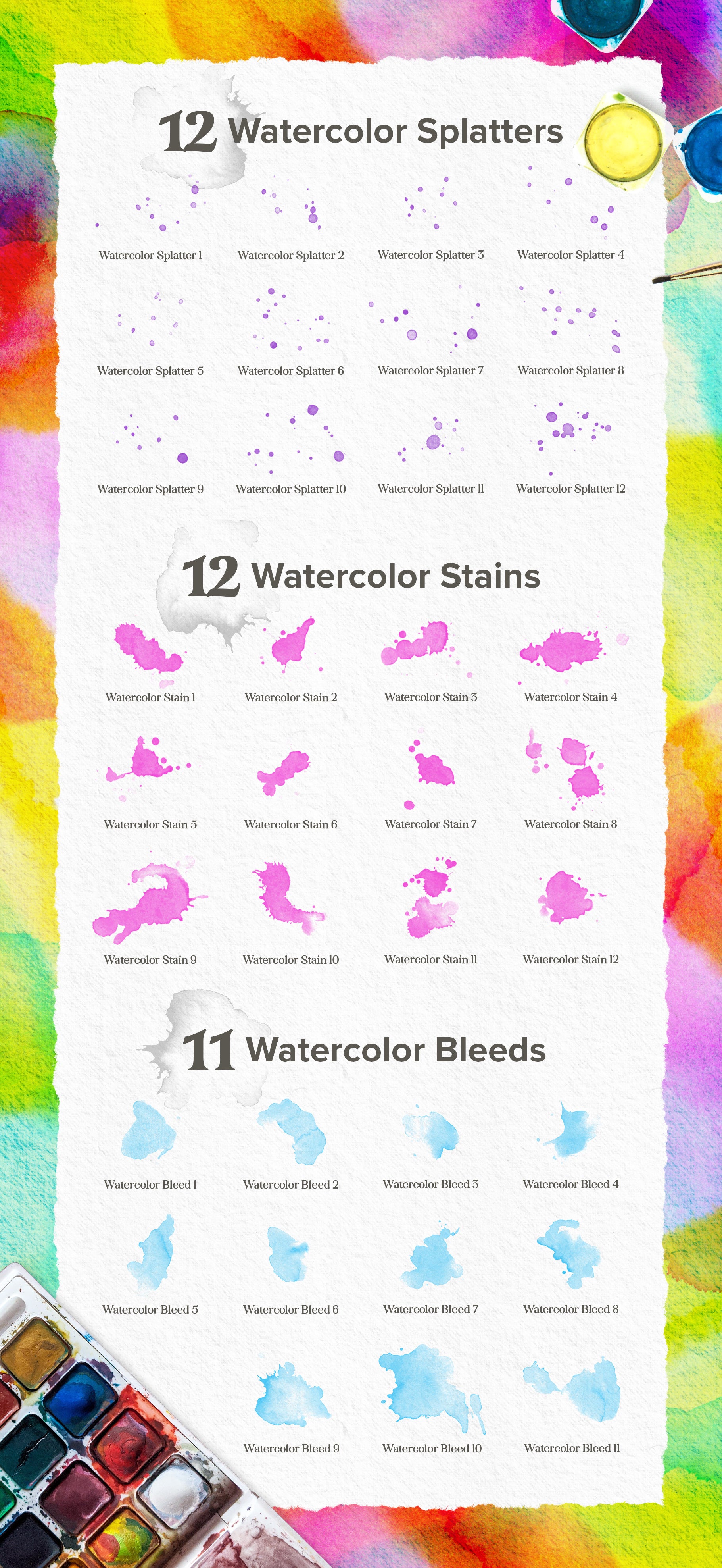 - 12 Watercolor Stains