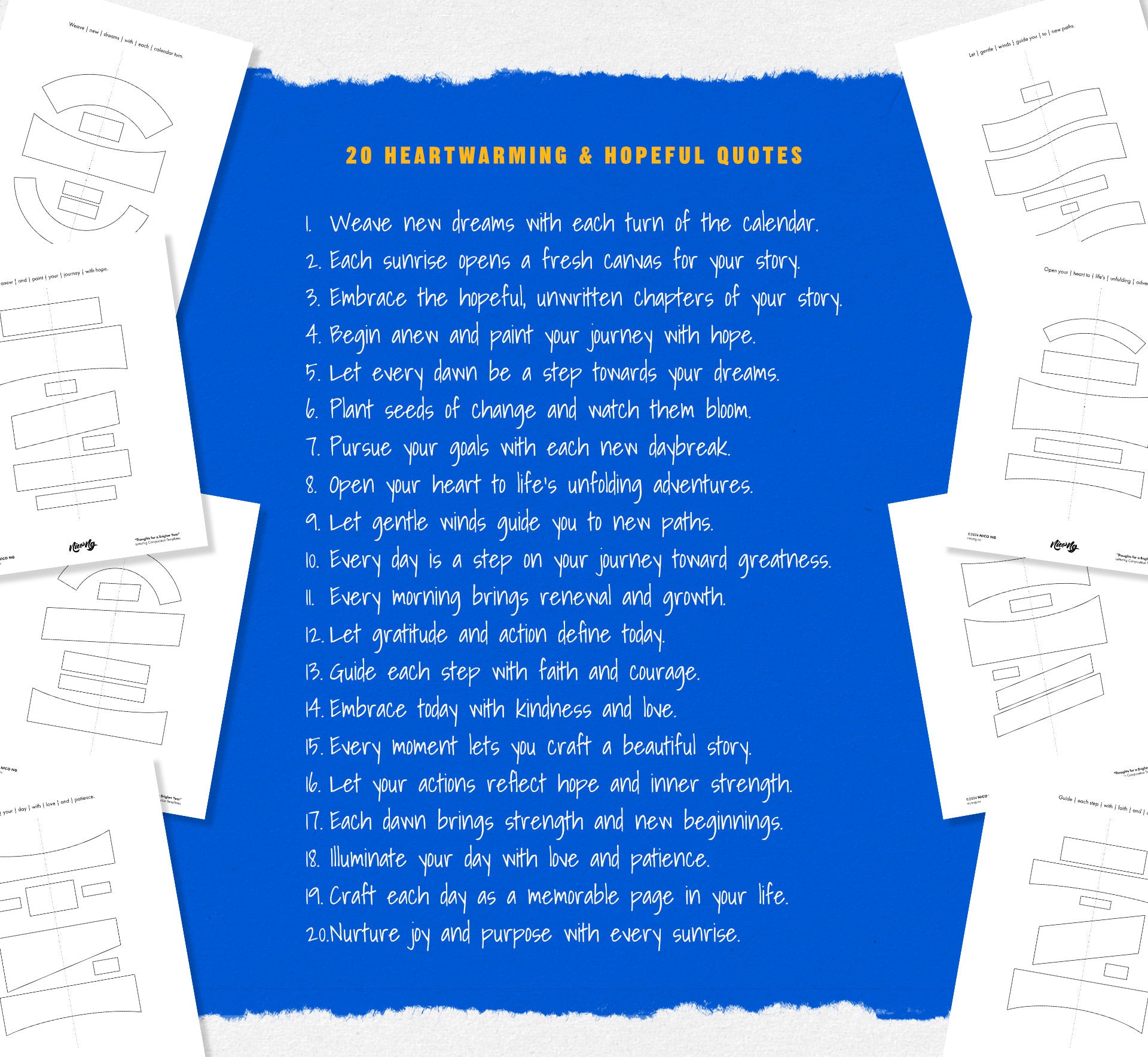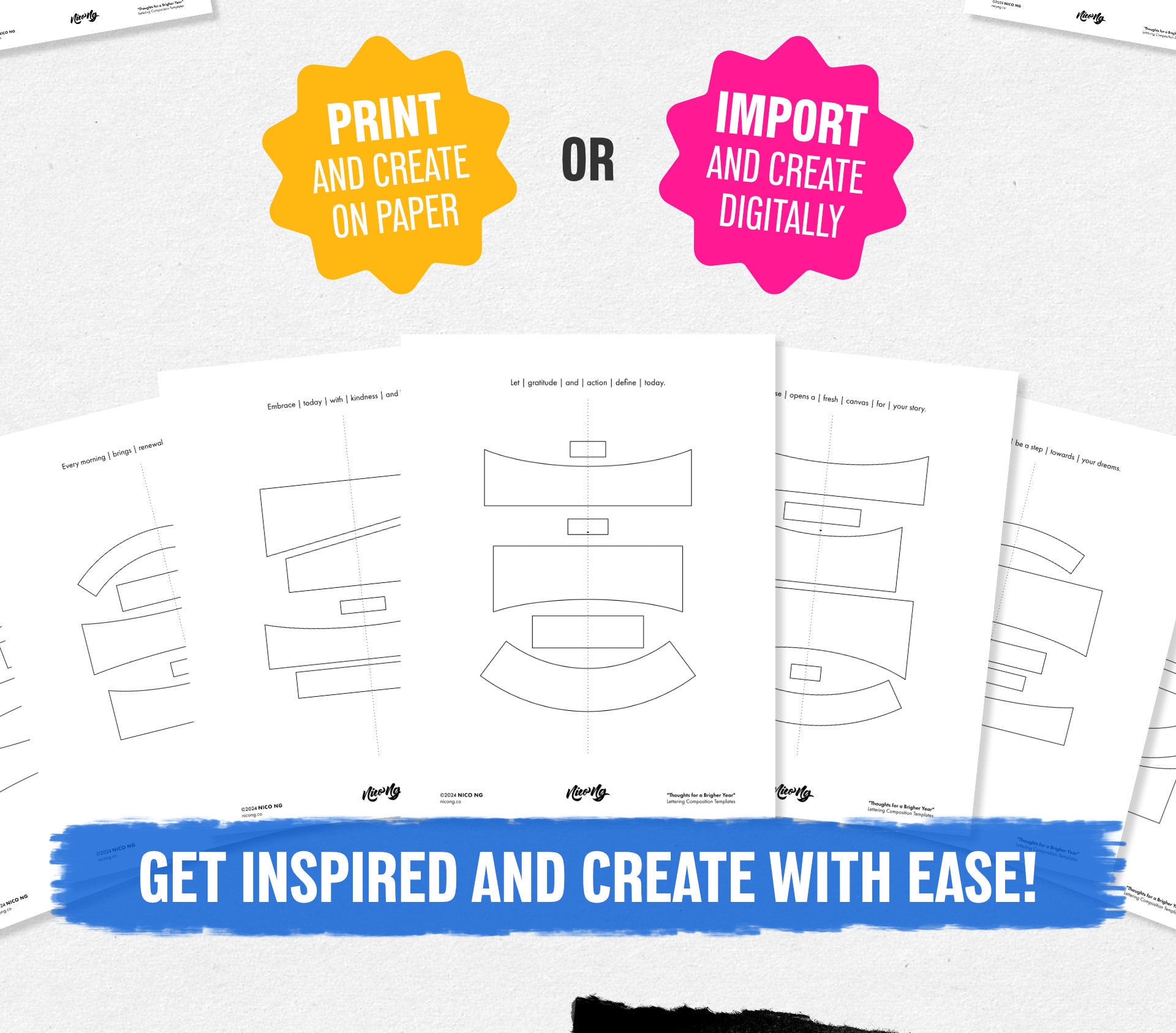 Introducing our collection of 18 (+2 free) heartwarming and hopeful quotes, handpicked to kickstart your year with a splash of positivity. And here's the best part - each quote comes with its very own lettering layout template, lovingly crafted by yours truly, Nico Ng.